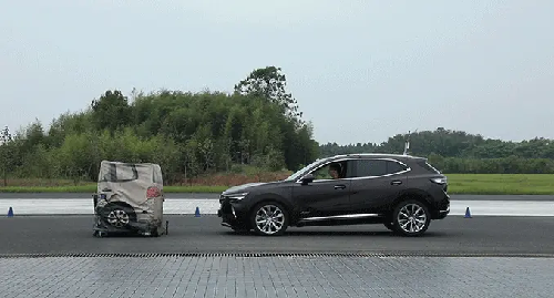 最后还测试了主动刹车功能,在30km/h的速度下,面对仿真汽车以及移动假人,均能在完全放开刹车的情况下刹停。值得一提的是,以上体验大多是在下雨,视线受阻的情况下进行的,可整体效果却还是相当好。