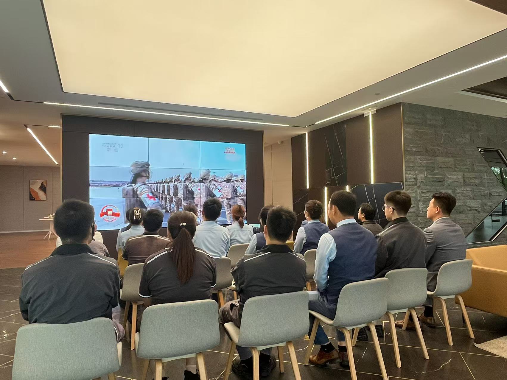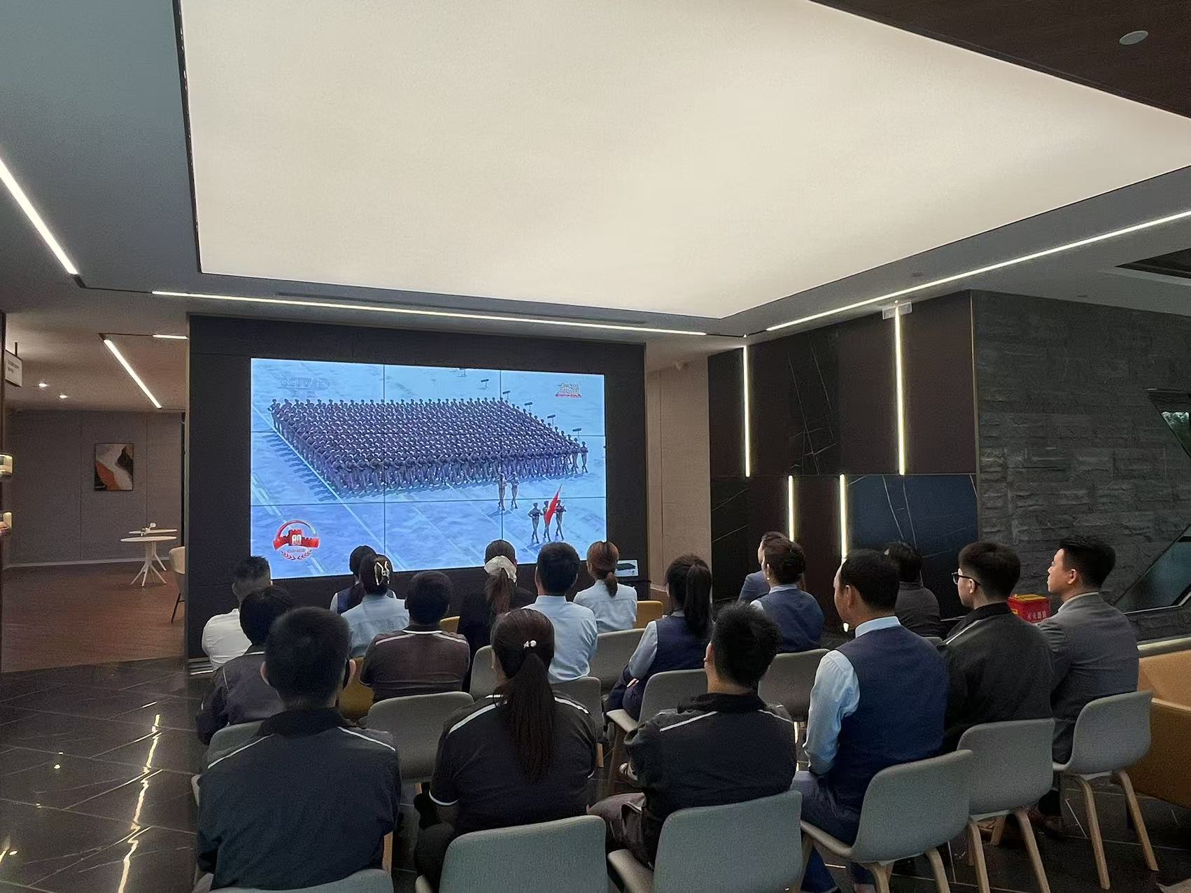 上午10时,天安门广场上,45个方(梯)队以铿锵步伐接受检阅,高超声速武器、无人智能系统等国产新锐装备首次亮相,展现了中国军事力量的飞跃发展。员工们通过屏幕目睹了“平型关大战突击连”等抗战老部队与新时代合成营同场受阅的壮阔场景,深刻感受到“党指挥枪”的血脉传承。总经理杨三来在观后座谈中感慨:“从东北抗联的草根棉絮到今天的东风-41洲际导弹,中国共产党领导下的中国人民用血肉与信念铸就了捍卫和平的钢铁长城。”