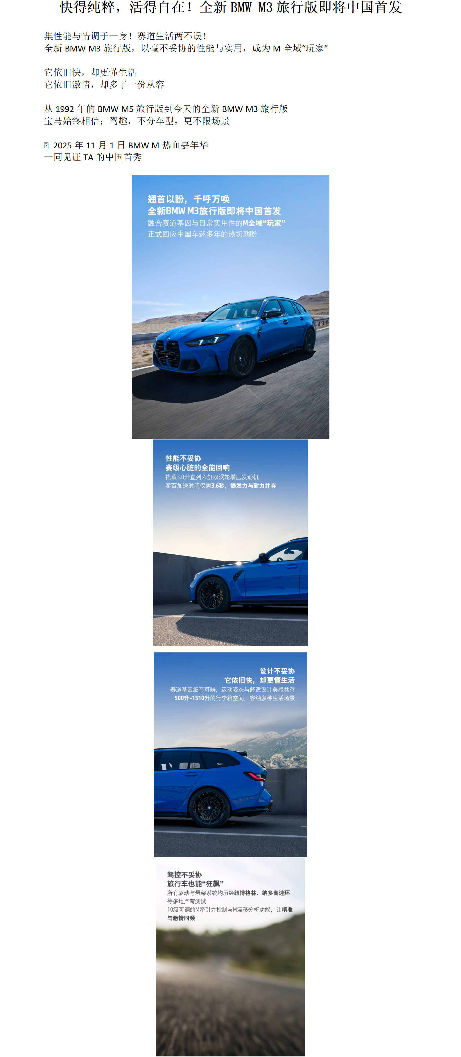 快得纯粹,活得自在!全新BMW M3旅行版即将中国首发
