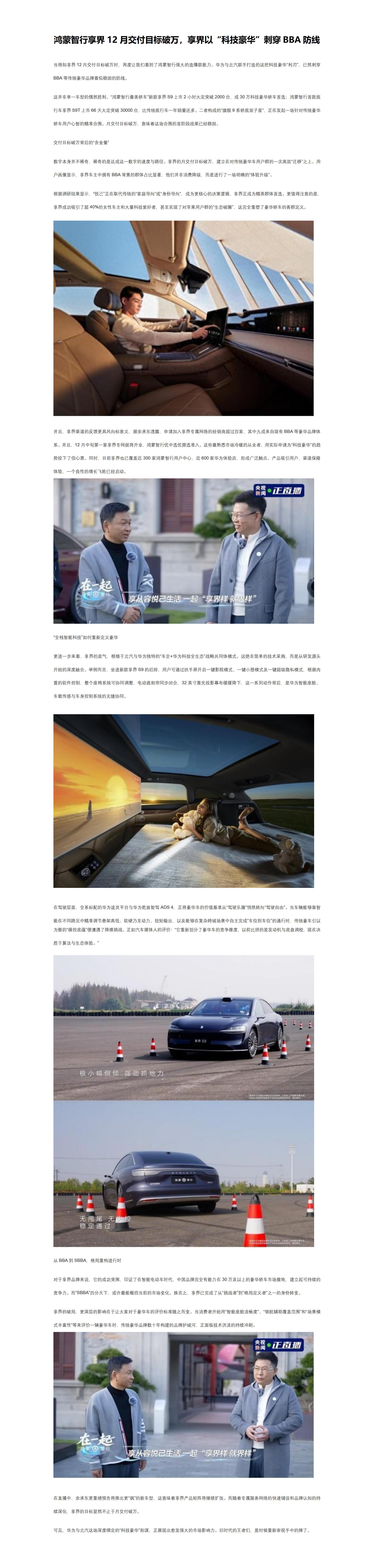 鸿蒙智行享界12月交付目标破万,享界以“科技豪华”刺穿BBA防线
