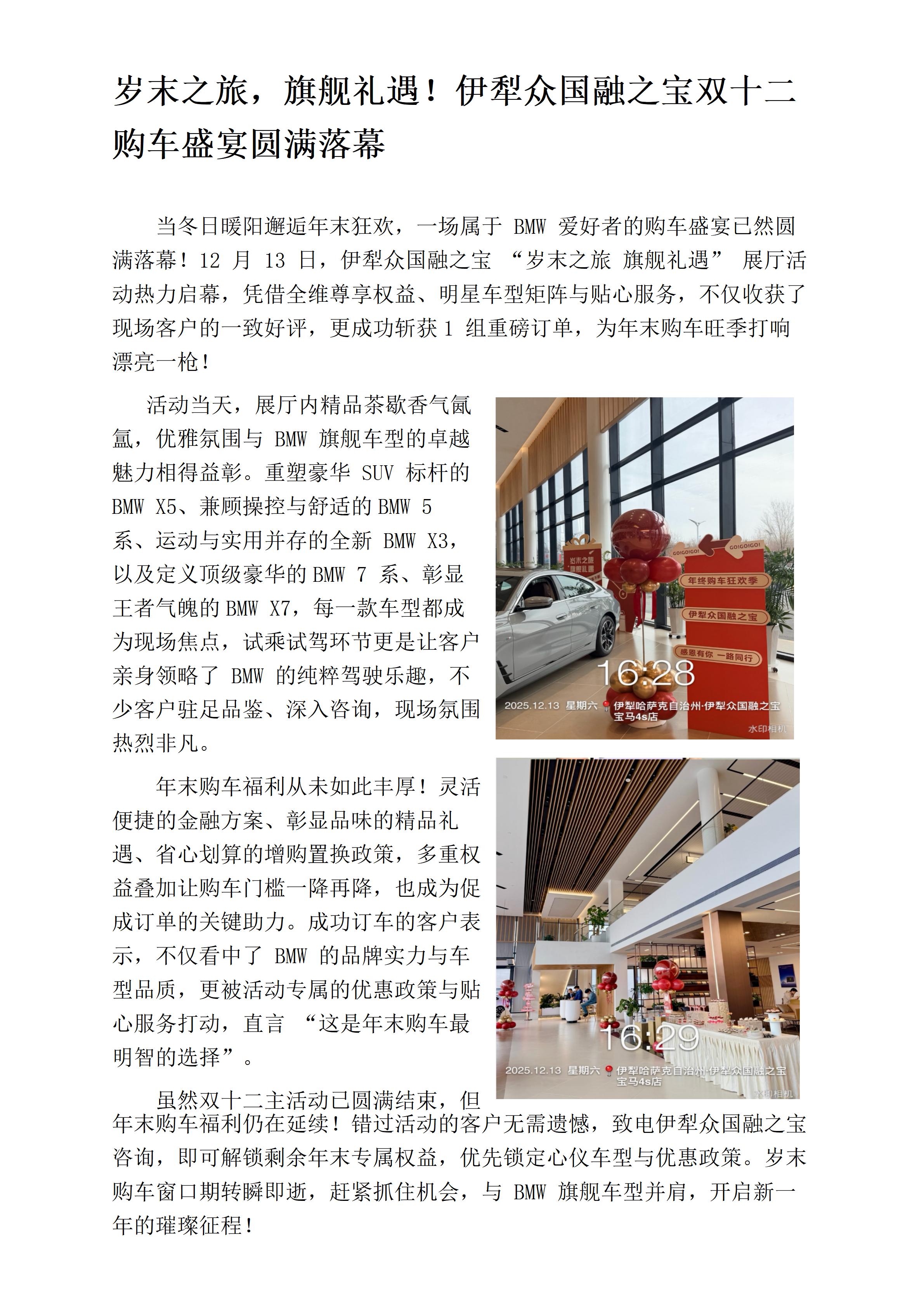 岁末之旅,旗舰礼遇!伊犁众国融之宝双十二购车盛宴圆满落幕