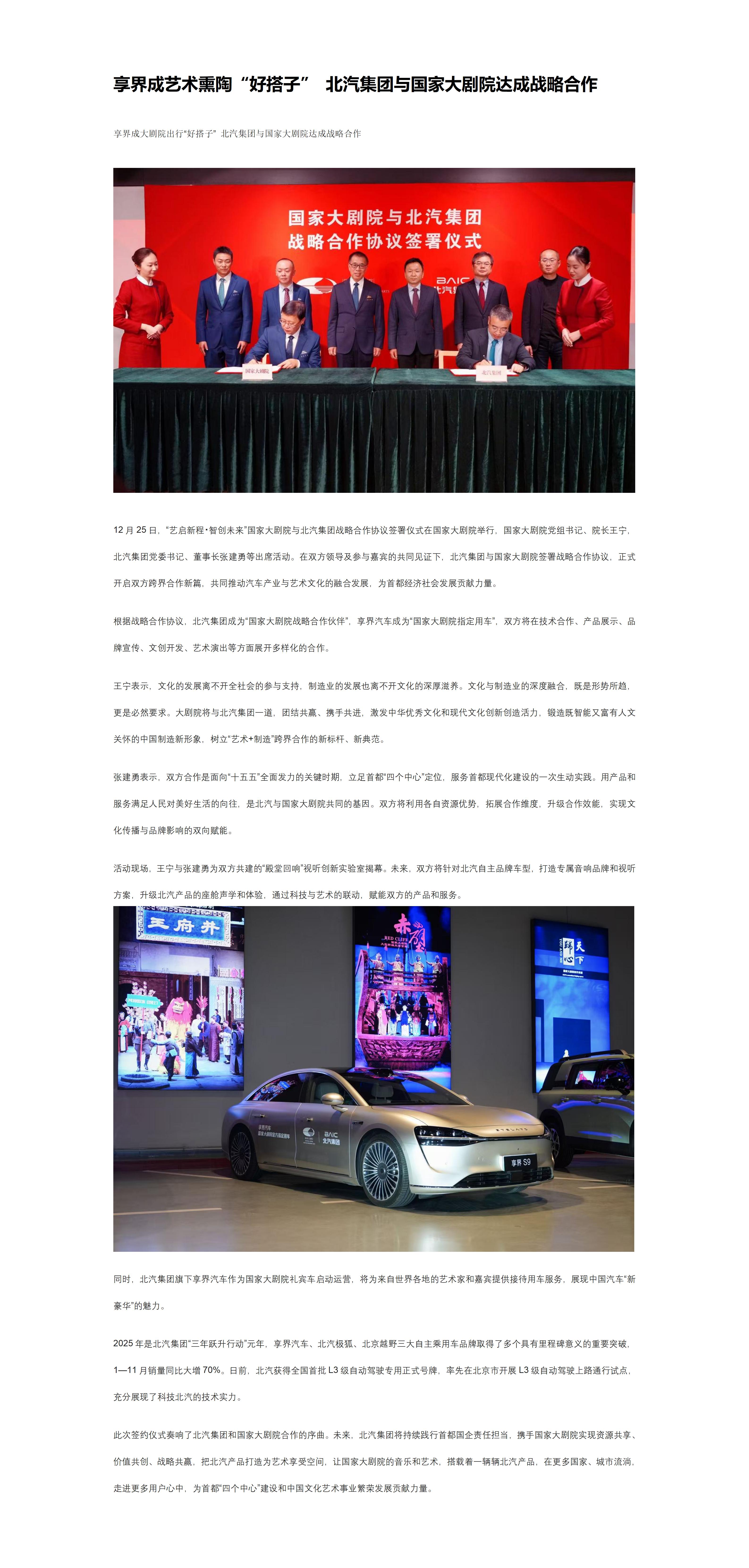 享界成艺术熏陶“好搭子” 北汽集团与国家大剧院达成战略合作