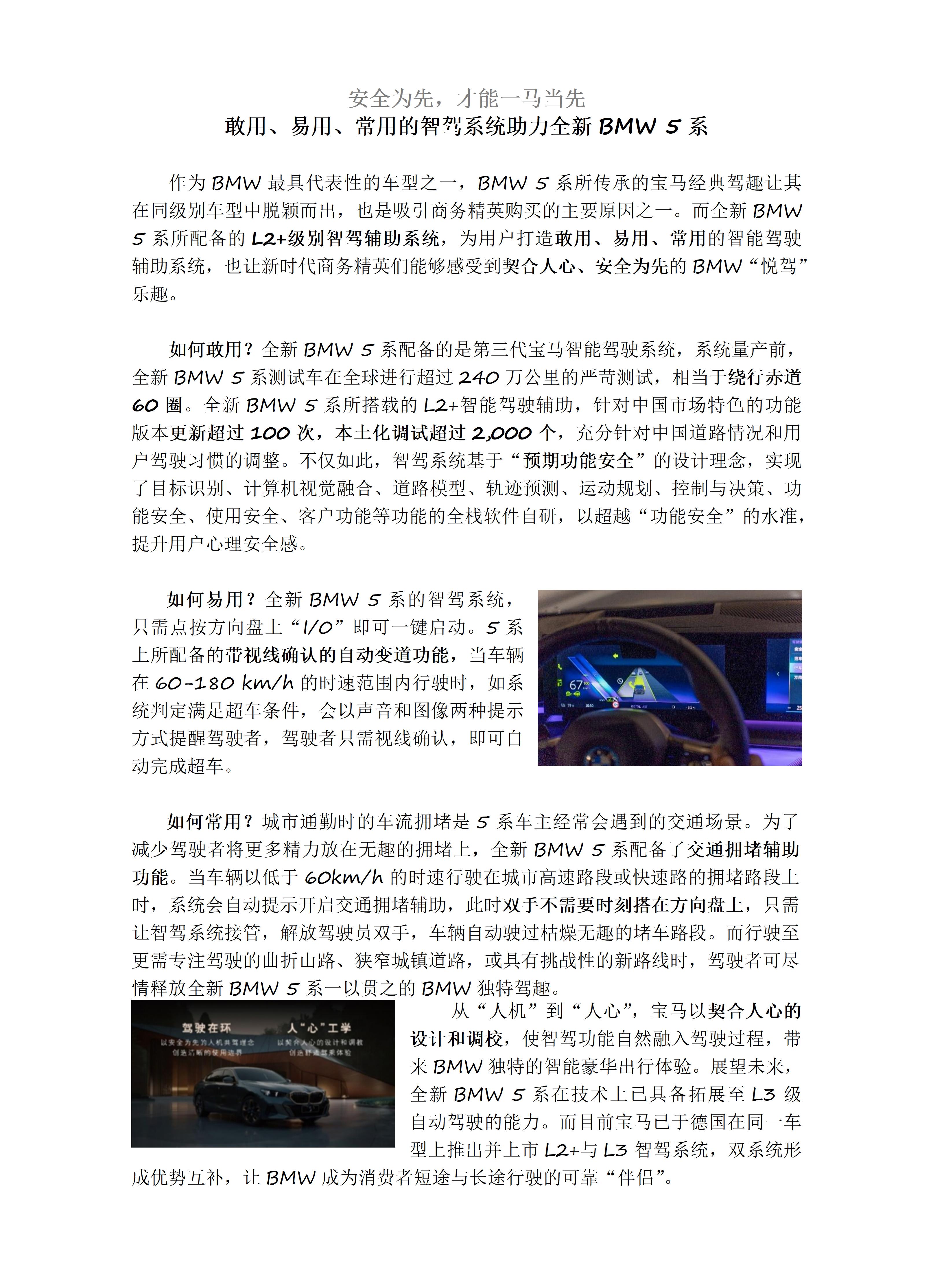 安全为先,才能一马当先 敢用、易用、常用的智驾系统助力全新BMW 5系