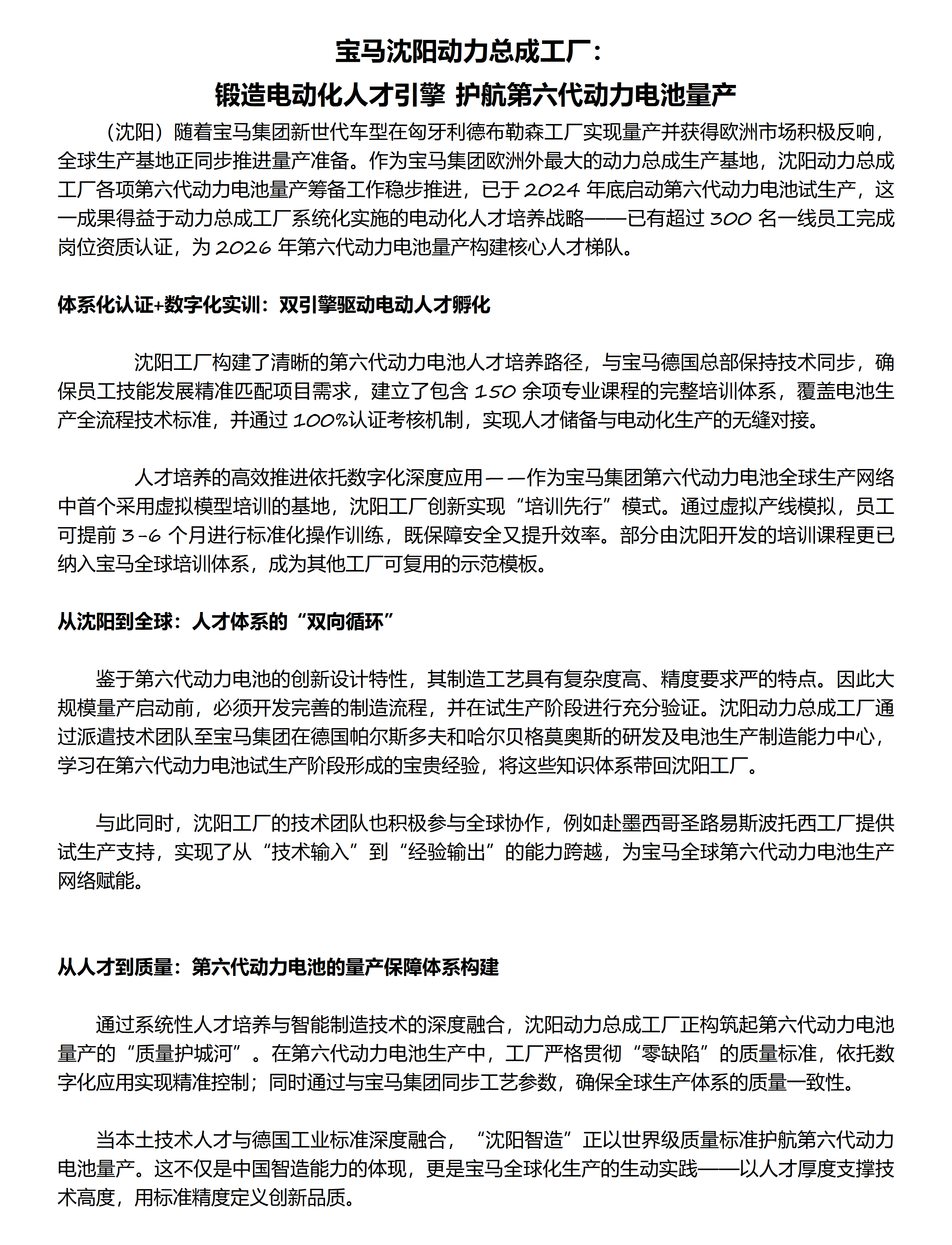 宝马沈阳动力总成工厂: 锻造电动化人才引擎 护航第六代动力电池量产