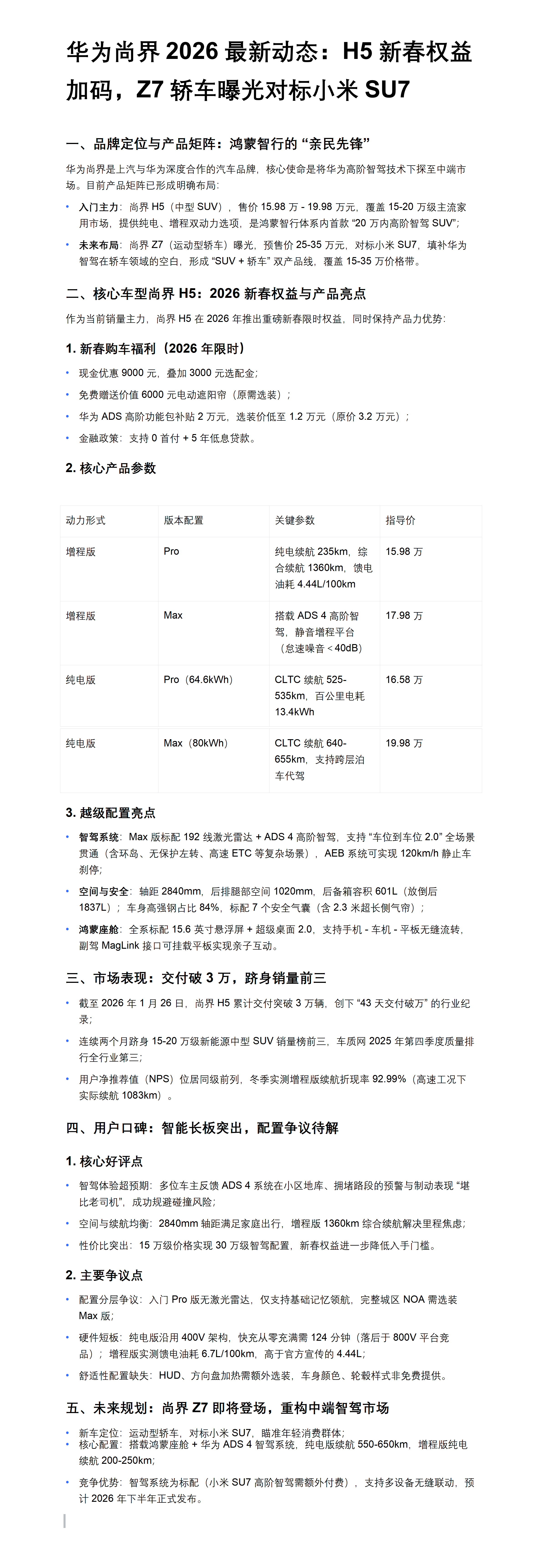 华为尚界2026最新动态:H5新春权益加码,Z7轿车曝光对标小米SU7
