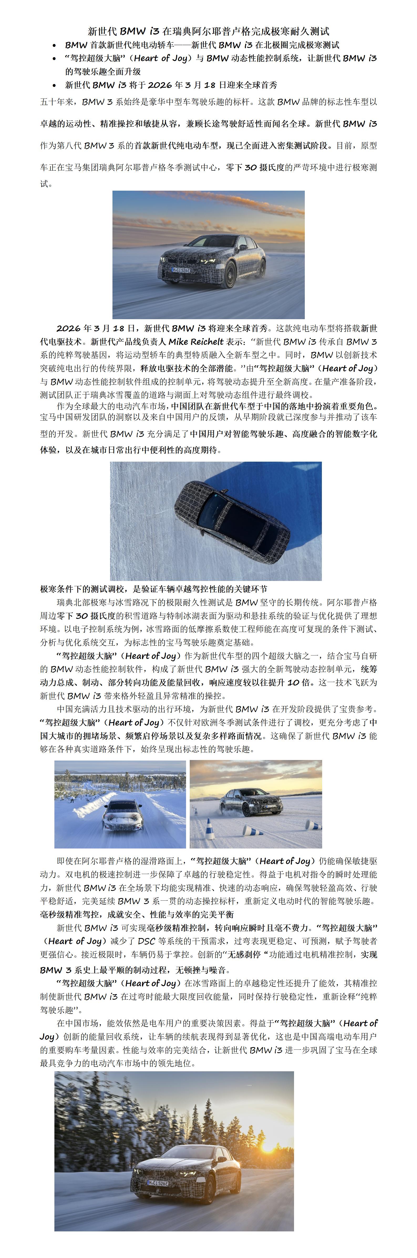 新世代BMW i3在瑞典阿尔耶普卢格完成极寒耐久测试