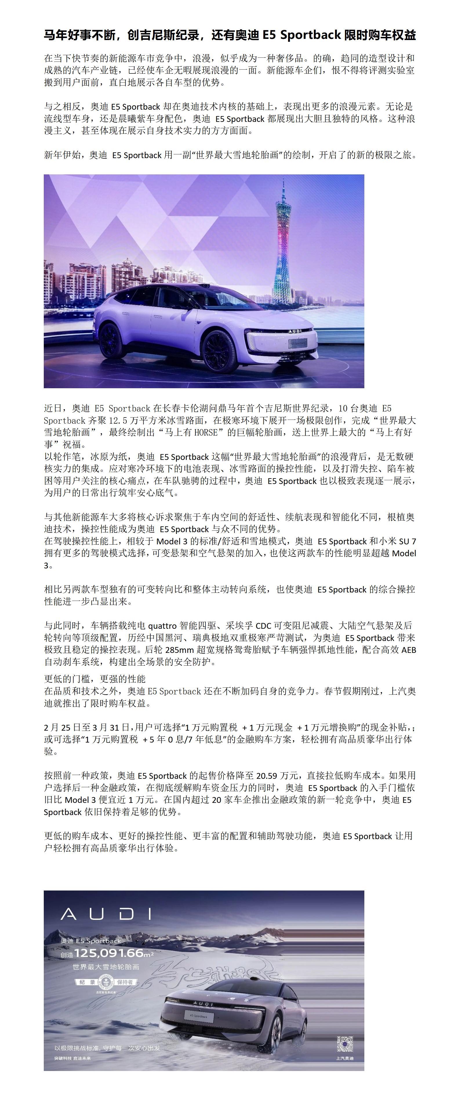 马年好事不断,创吉尼斯纪录,还有奥迪E5 Sportback限时购车权益
