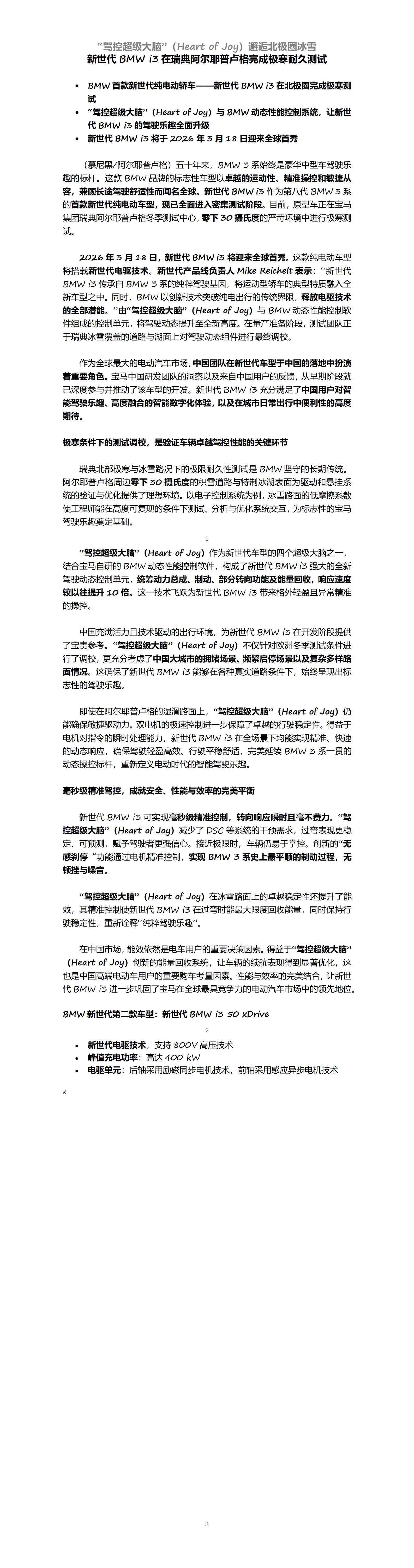 新世代BMW i3在瑞典阿尔耶普卢格完成极寒耐久测试
