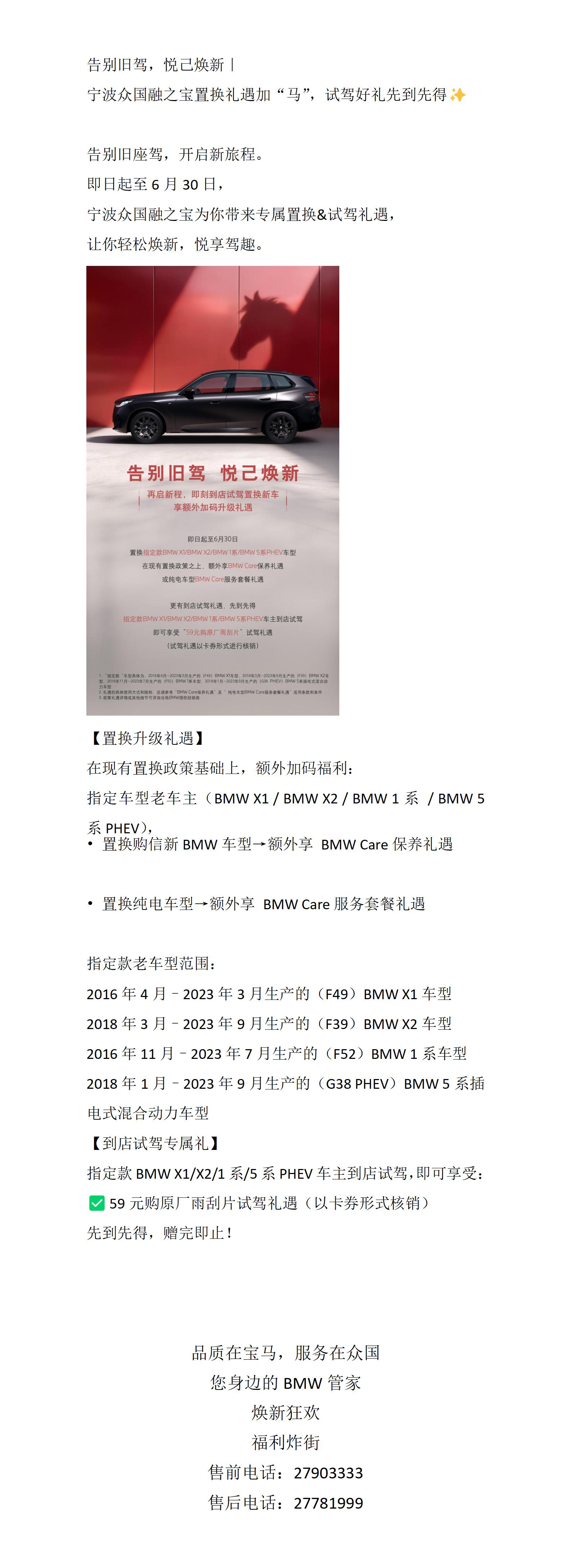 告别旧驾,悦己焕新| 宁波众国融之宝置换礼遇加“马”,试驾好礼先到先得✨
