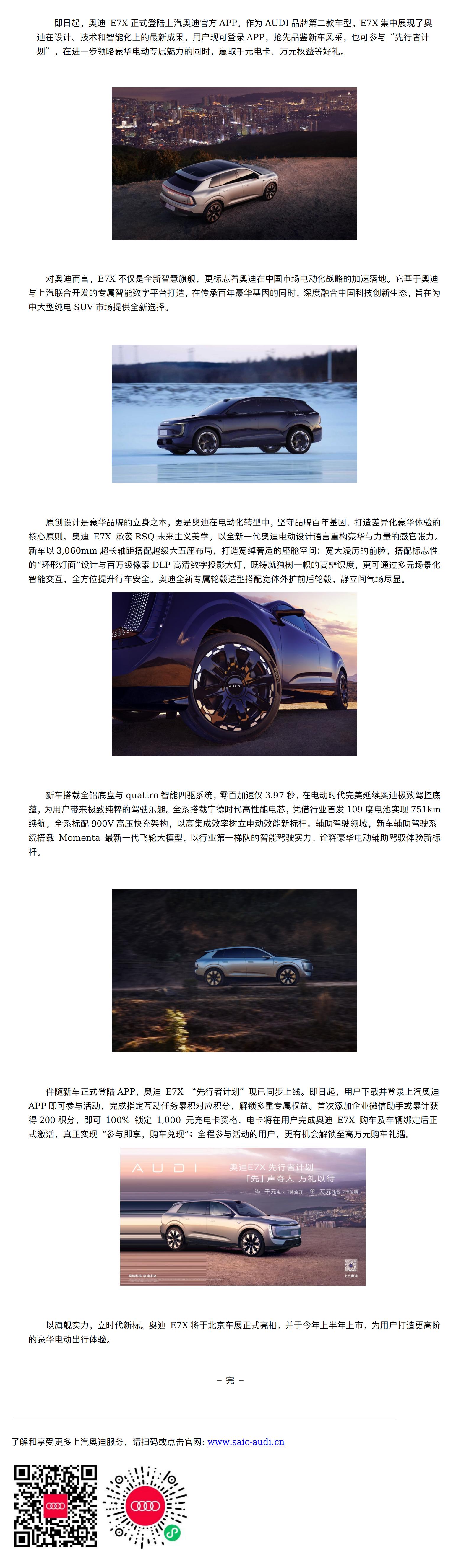 奥迪 E7X正式登陆上汽奥迪官方APP