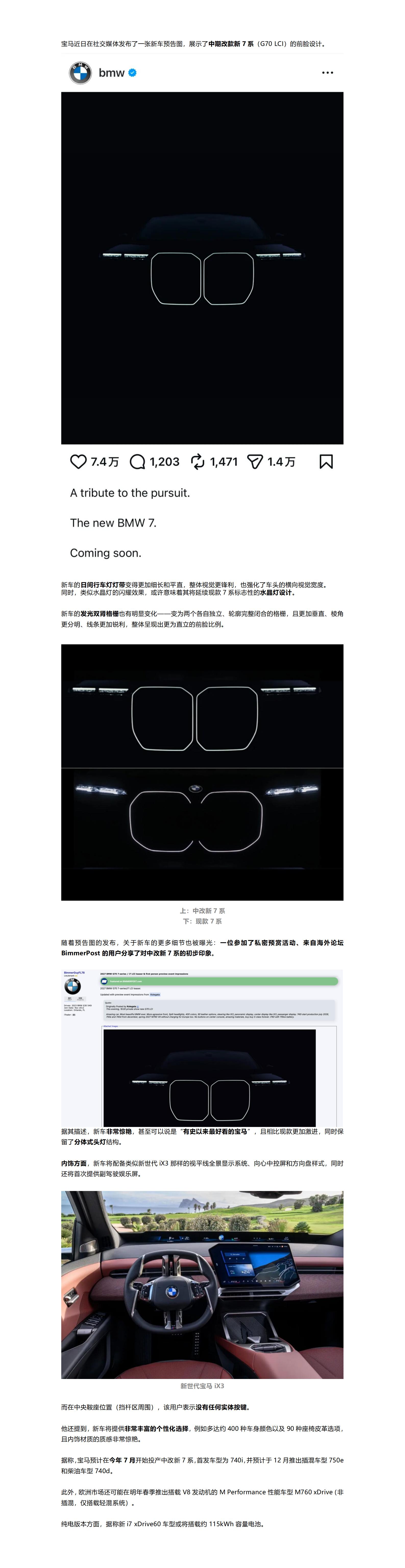 宝马新7系即将亮相,看过实车的人说:非常惊艳!