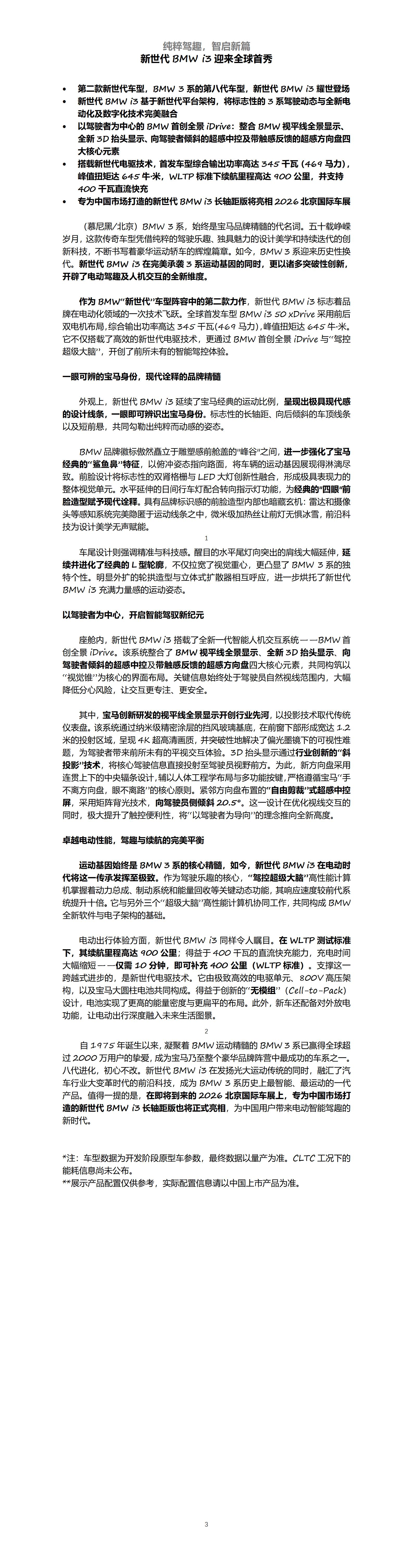 纯粹驾趣,智启新篇 新世代BMW i3迎来全球首秀