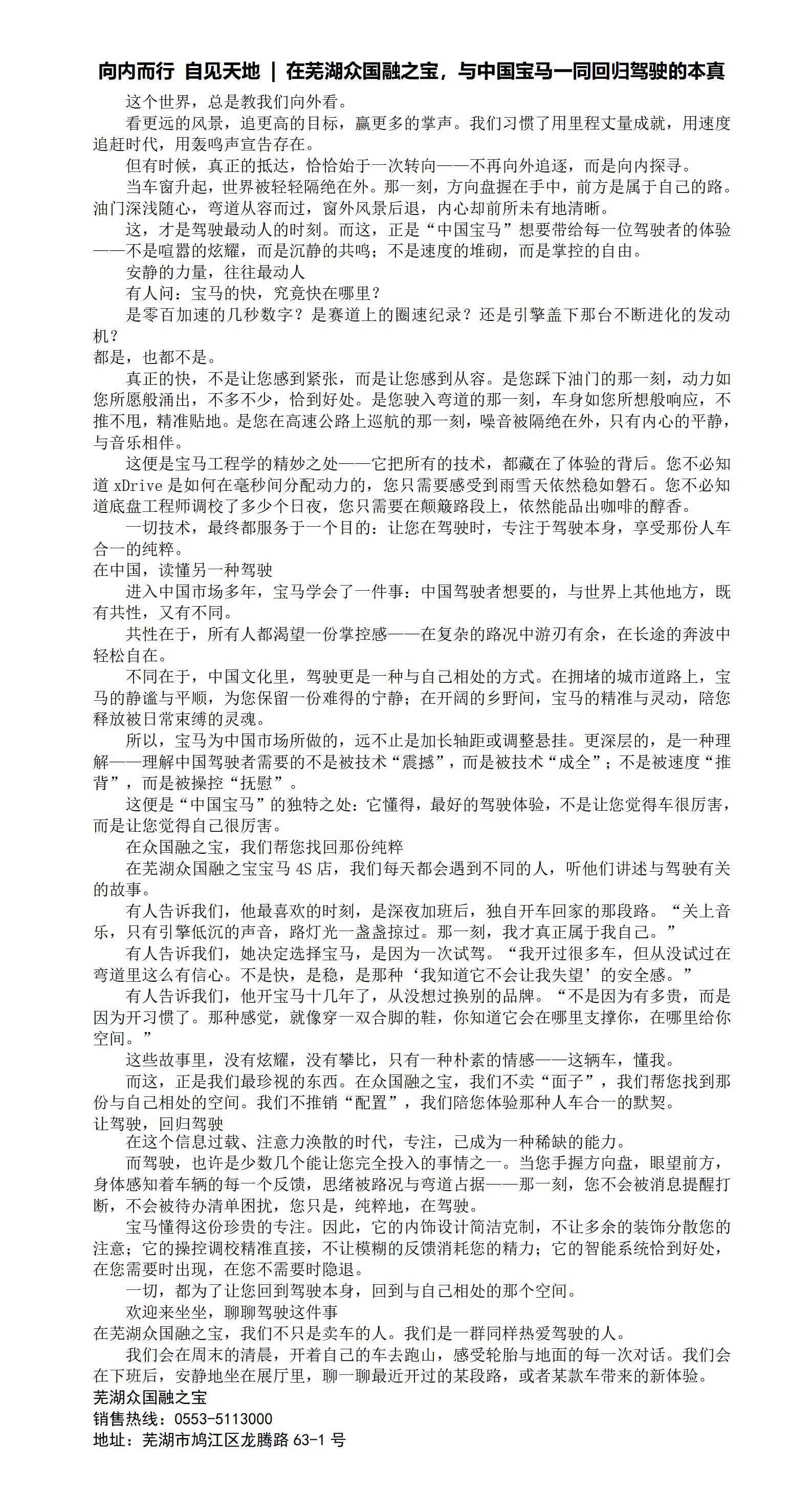 向内而行 自见天地 | 在芜湖众国融之宝,与中国宝马一同回归驾驶的本真
