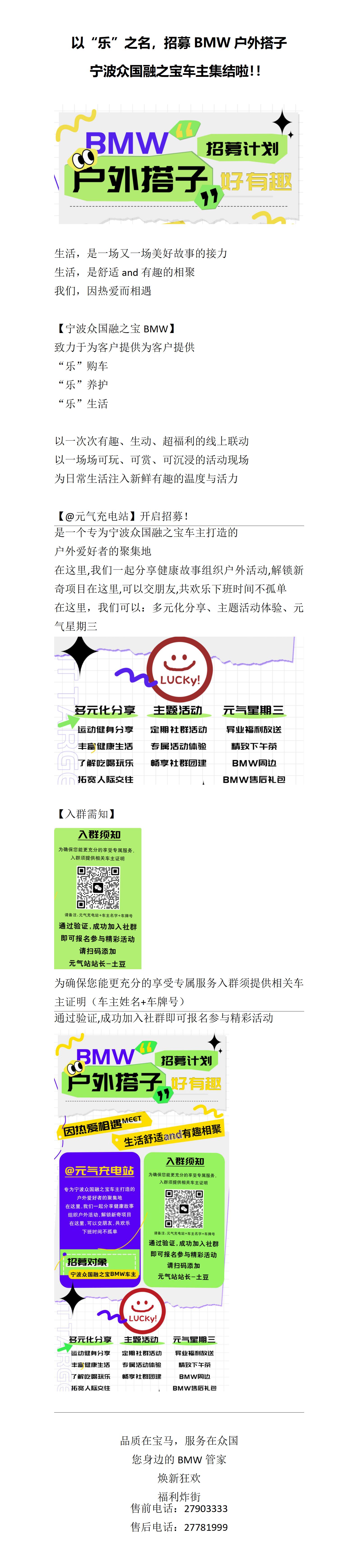 以“乐”之名,招募BMW户外搭子 宁波众国融之宝车主集结啦!!