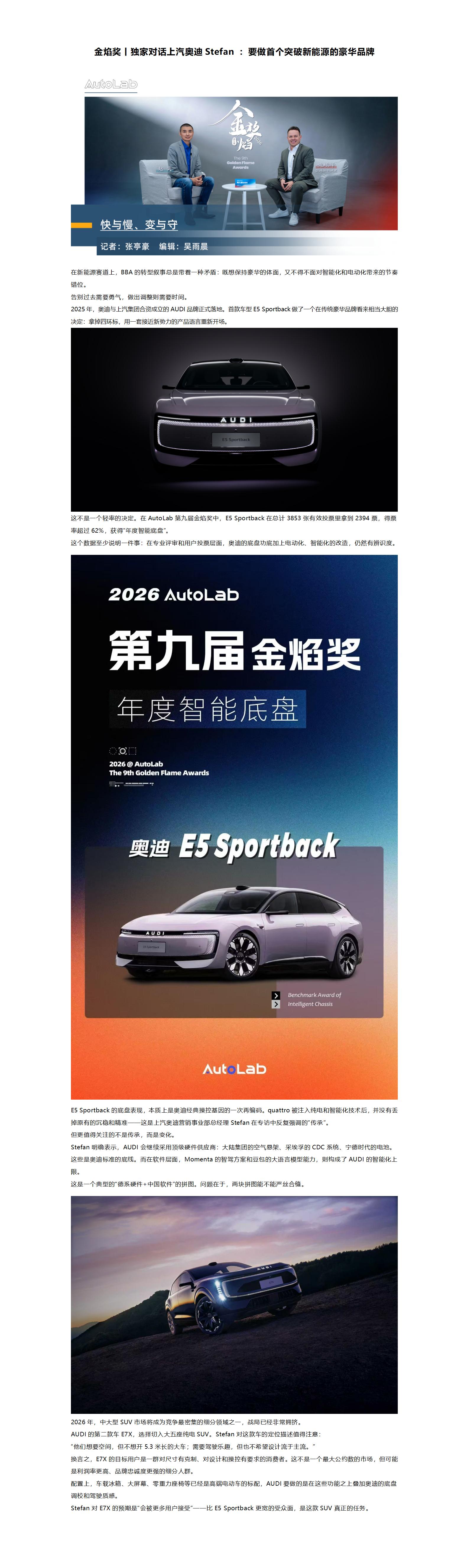 金焰奖丨独家对话上汽奥迪Stefan :要做首个突破新能源的豪华品牌