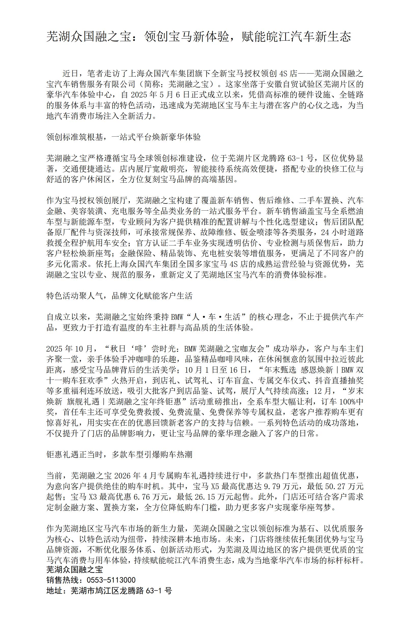 芜湖众国融之宝:领创宝马新体验,赋能皖江汽车新生态
