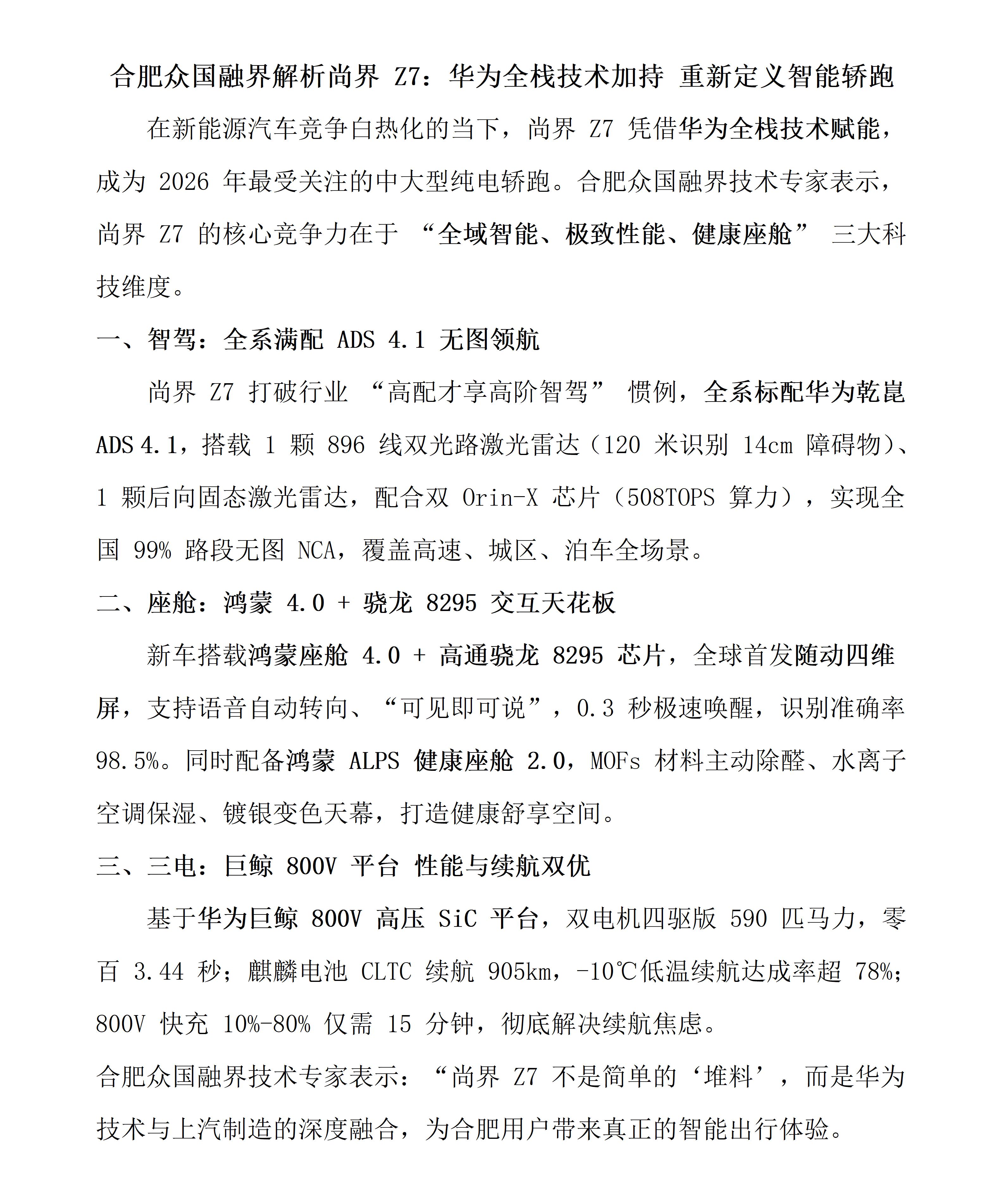 合肥众国融界解析尚界 Z7:华为全栈技术加持 重新定义智能轿跑